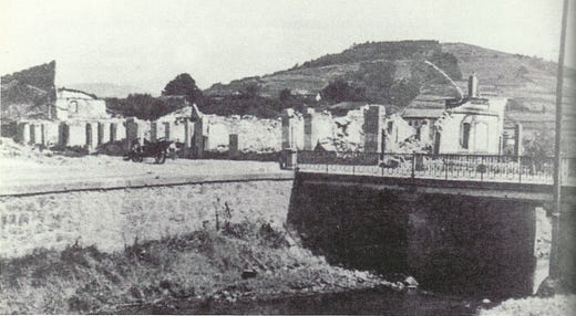 The date is 26th April 1937. As a harbinger to the blitzkrieg strategy used throughout World War 2 to crush morale and raze cities to the ground Hitler’s Condor Legion and Mussolini’s Aviazione Legionaria all but destroy Guernica. An estimated 70% of the town is pulverized. They are acting on orders from Francisco Franco. The Renteria bridge remains intact.
